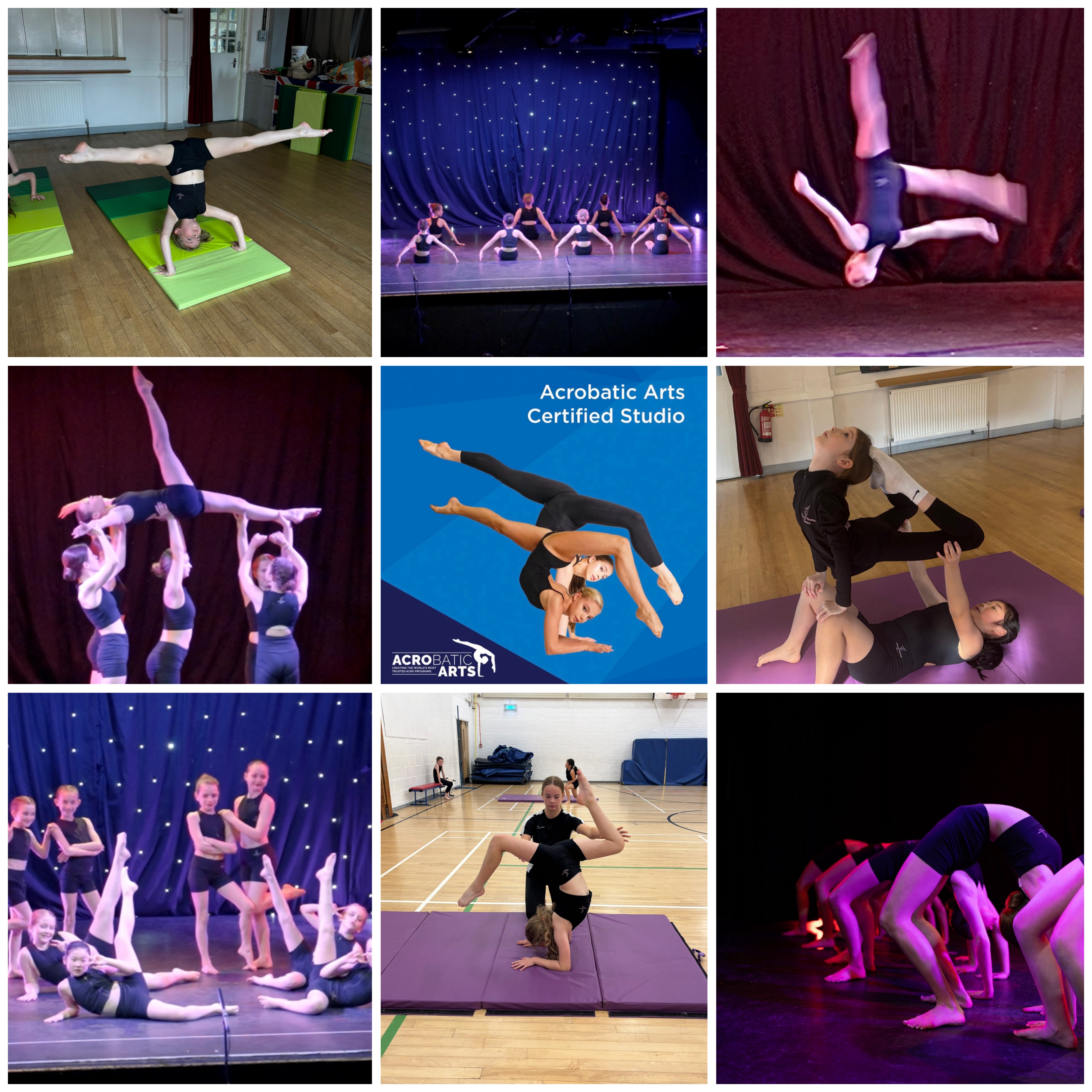 Acro dance is a blend of 5 divisions – flexibility, strength, balancing, limbering and tumbling. A perfect enhancement to other dance genres. They are energetic classes where kids learn how to do bridges, handstands, cartwheels working up towards walkovers, front aerials and more. This will lead on to learning dances with Acro moves in and working towards exams.